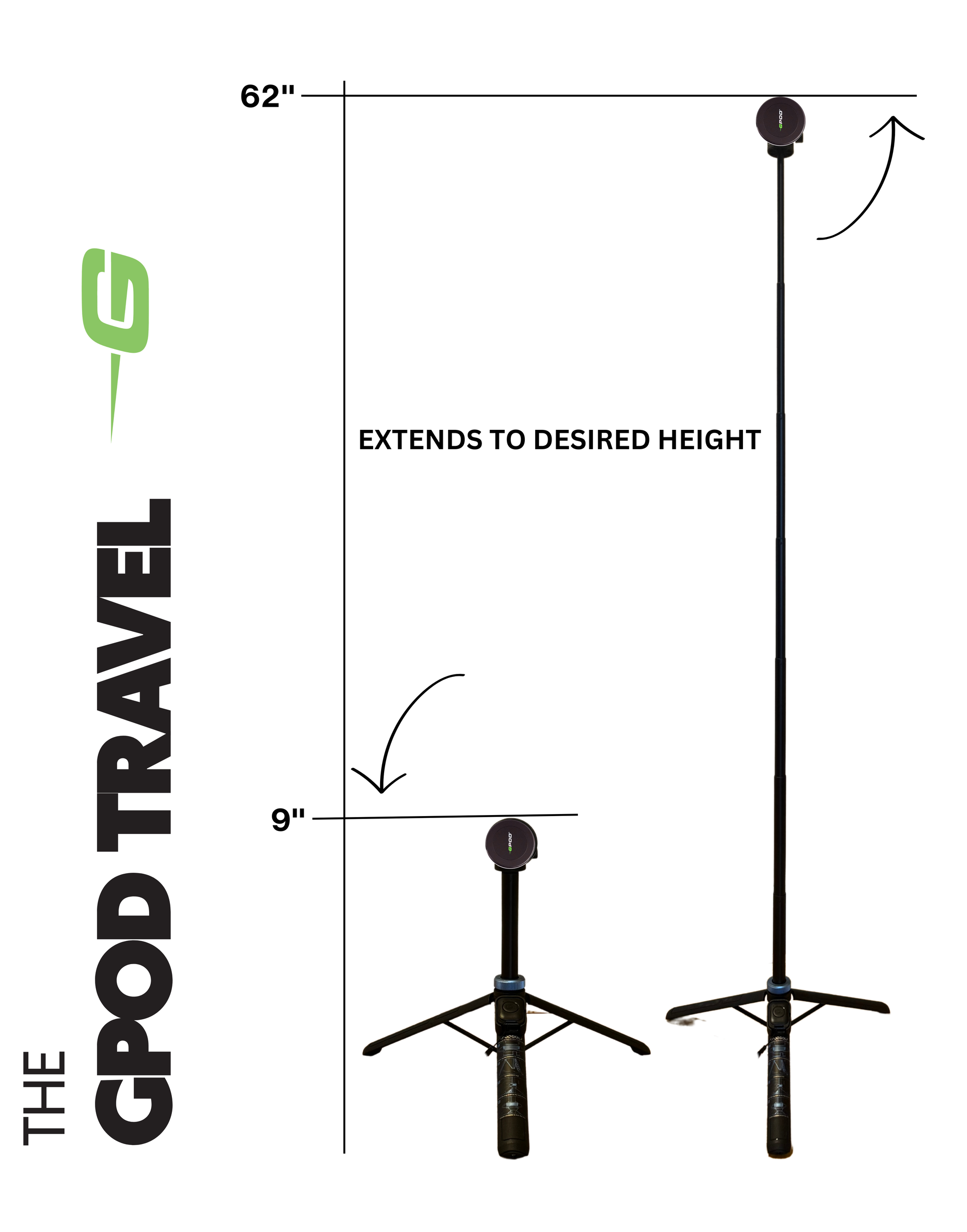 GPOD Travel with MagSafe® is our most compact and portable magnetic phone tripod yet. Perfect for travel, indoor use, and capturing stunning content wherever your adventures take you. This lightweight and collapsible tripod extends from a mere 9 inches to a full 62 inches, offering incredible versatility and flexibility.
